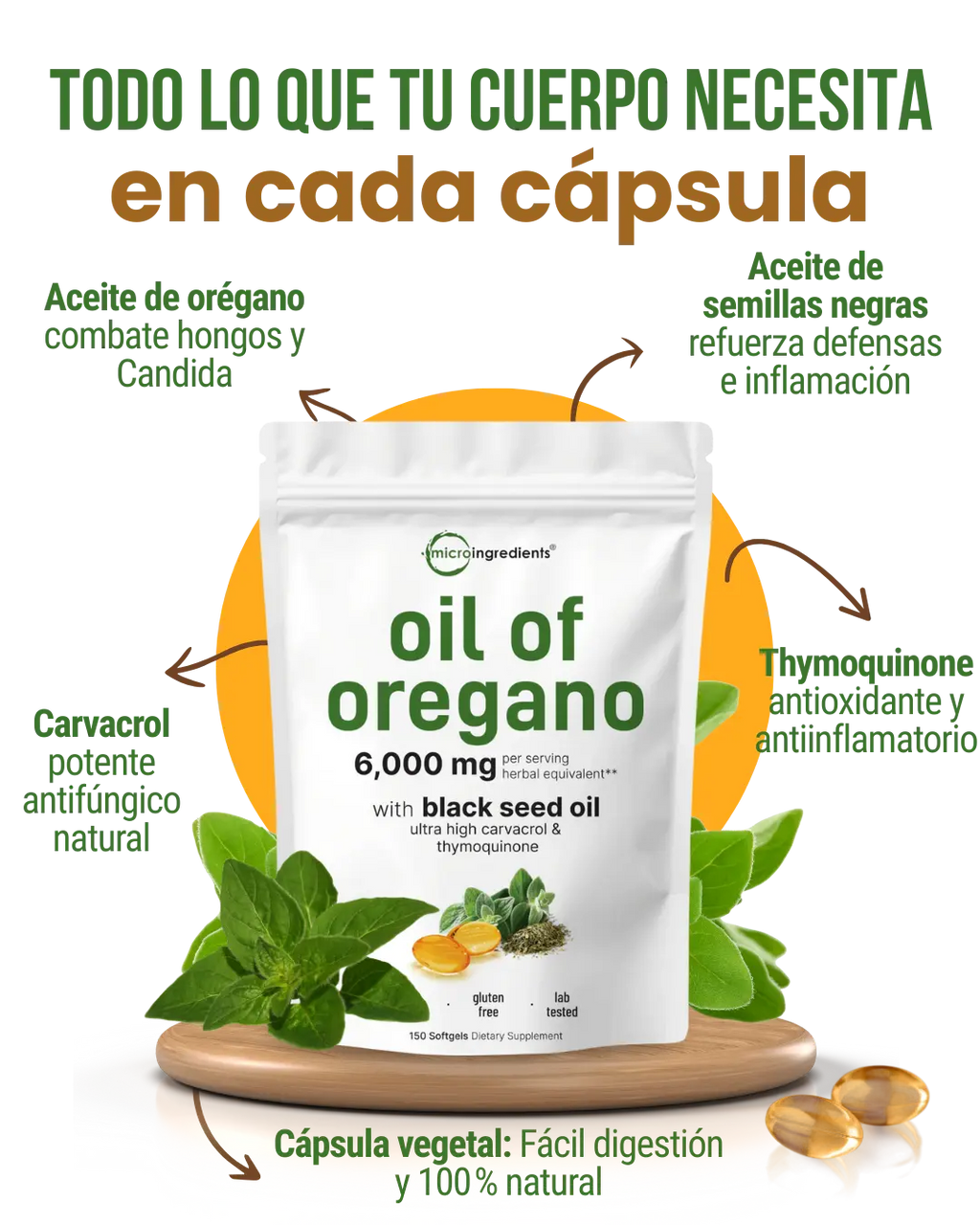 Cuando tu sistema inmunológico está débil, es más fácil enfermarse y sufrir infecciones constantes. No dejes que bacterias, hongos o Candida afecten tu bienestar. Fortalece tus defensas de manera natural y efectiva con aceite de orégano y semillas negras, y recupera tu energía y protección diaria.