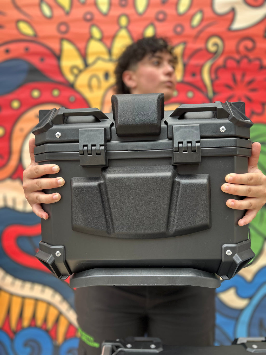 Con un cierre seguro y líneas modernas, este maletero combina estilo, robustez y funcionalidad para el motociclista exigente.
